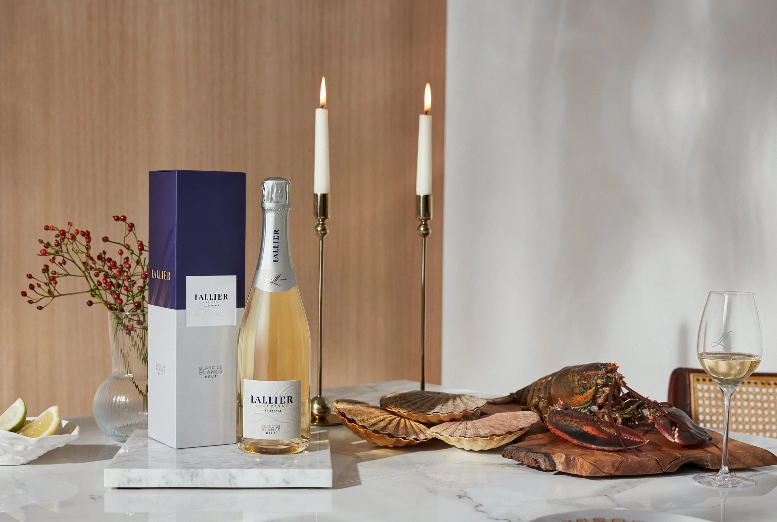 The resulting liquid is a house style characterized by nuanced roundness as well as crisp charm and a hint of salinity. Demarville describes the Lallier style as a balance between four “emotions,” namely “purity and freshness” as expressions of the raw materials and terroir, and “intensity and depth” teased out by wine-making finesse, such as the aging wines in oak barrels according to their provenance.